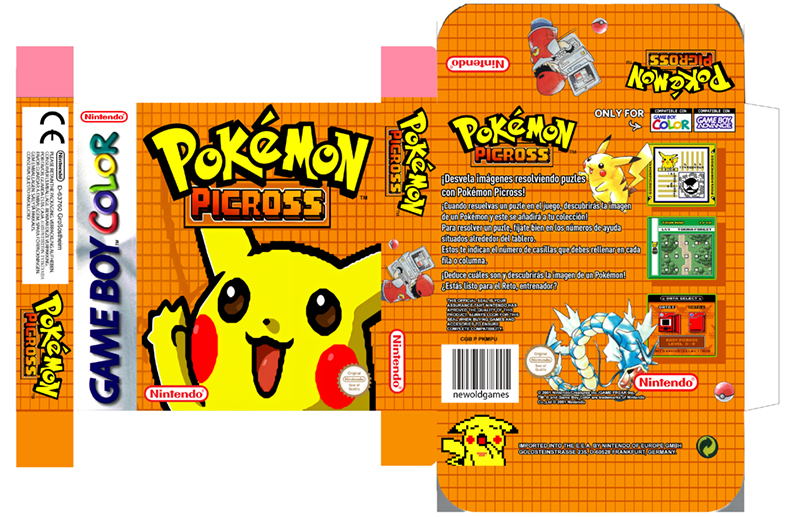 Esta es la caja que se vendió en España para el juego POKEMON PICROSS de CUSTOM GAMEBOY COLOR. No todas las cajas de juegos para CUSTOM GAMEBOY COLOR llegaron en español.
