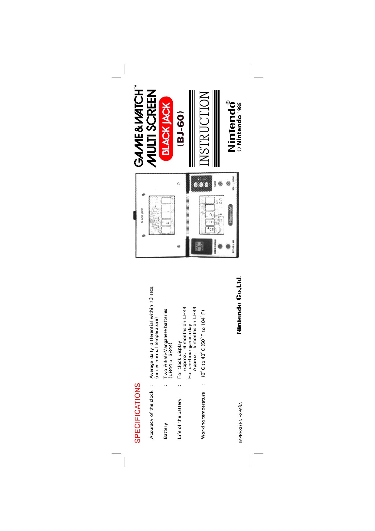 Manual de instrucciones remaquetado de BlackJack Manual maquetado para GAME & WATCH — Descarga en PDF