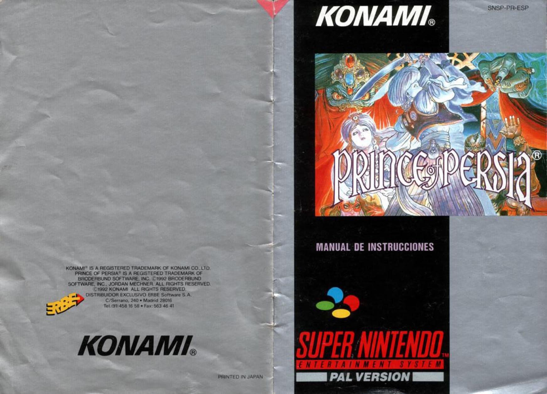 Este manual de PRINCE OF PERSIA ESP es una digitalización fiel del original físico. El documento conserva el diseño, tipografía y estructura del manual de instrucciones publicado en su momento por el fabricante para la SUPER NINTENDO.