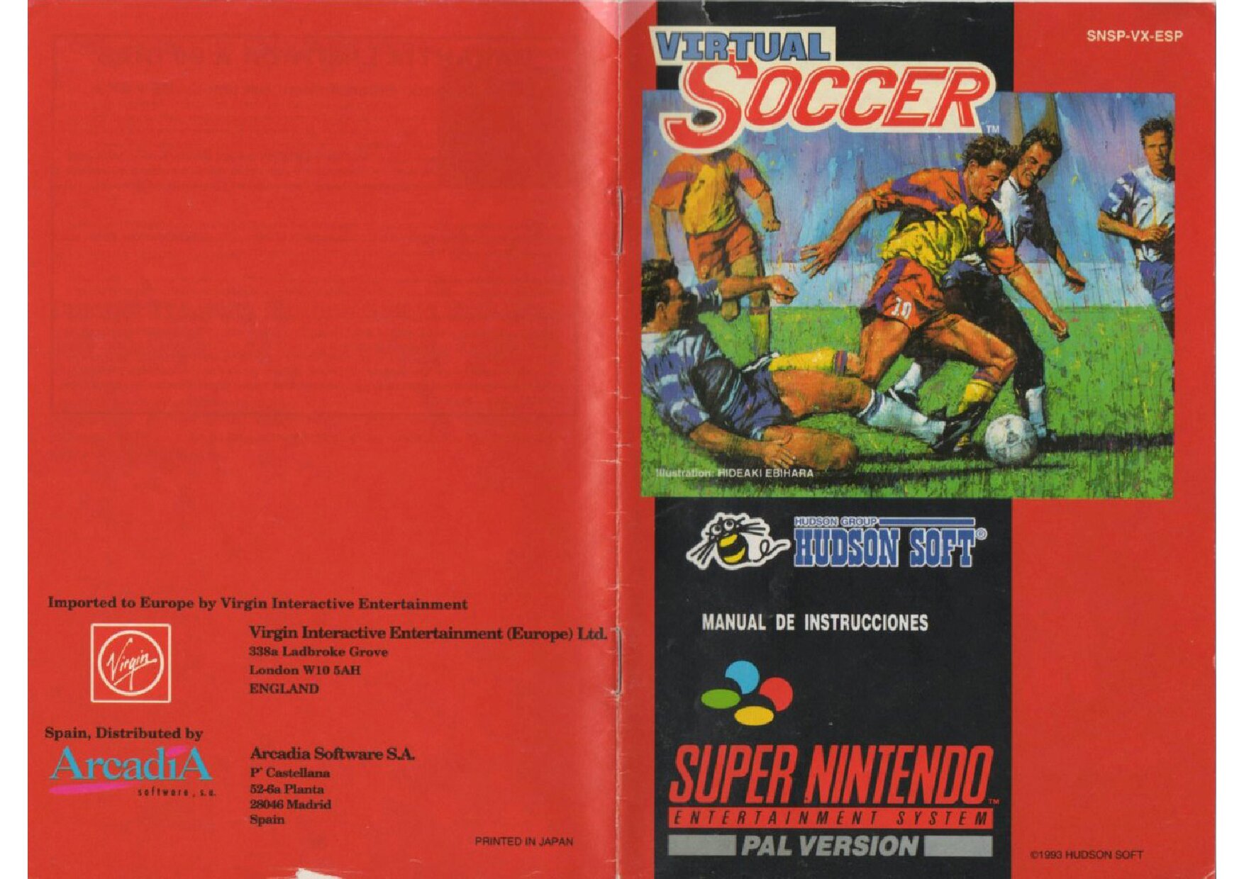 Este manual de VIRTUA SOCCER ESP es una digitalización fiel del original físico. El documento conserva el diseño, tipografía y estructura del manual de instrucciones publicado en su momento por el fabricante para la SUPER NINTENDO.