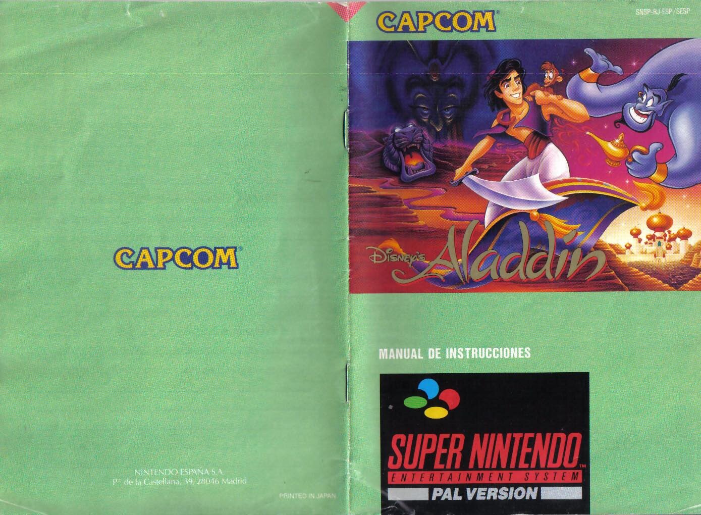 Manual de instrucciones original de ALADDIN ESP para SUPER NINTENDO — Descarga en PDF