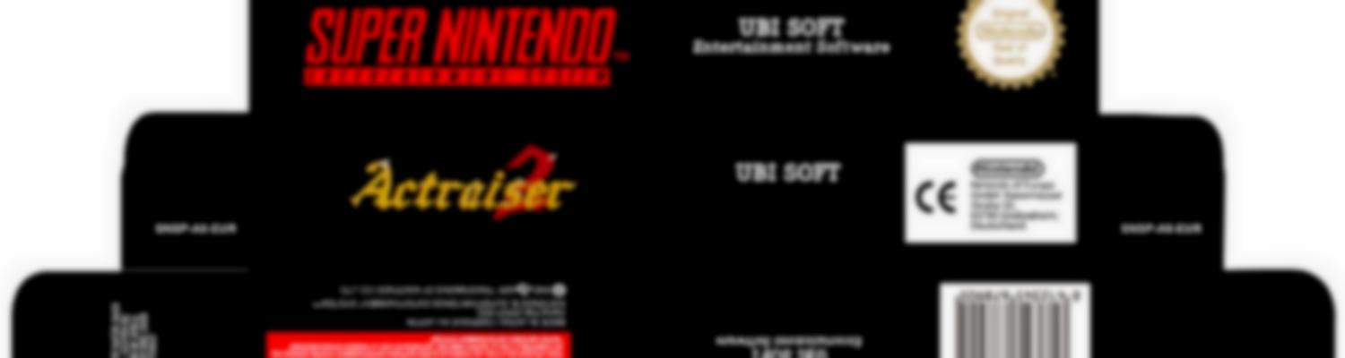 Esta es la caja que se vendió en España para el juego ACTRAISER 2 de SUPER NINTENDO. No todas las cajas de juegos para SUPER NINTENDO llegaron en español.
